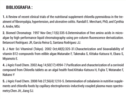 In più si è evidenziato che la supplementazione dietetica Chlorella può aiutare ad alleviare i sintomi della fi bromialgia24.