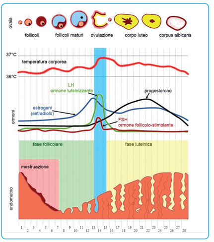 • Ruolo degli ormoni femminili durante la crescita (menarca) e durante il ciclo mestruale.