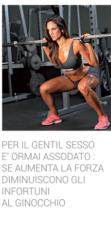 Per il gentil sesso é ormai assodato: se aumenta la FORZA diminuiscono gli infortuni al ginocchio. Frequenza di infortuni che rimane comunque nettamente superiore nel sesso femminile (Hewett et al. 1996 e 2000; Huston e Wotitys 1996; Renstrom et al. 2008).